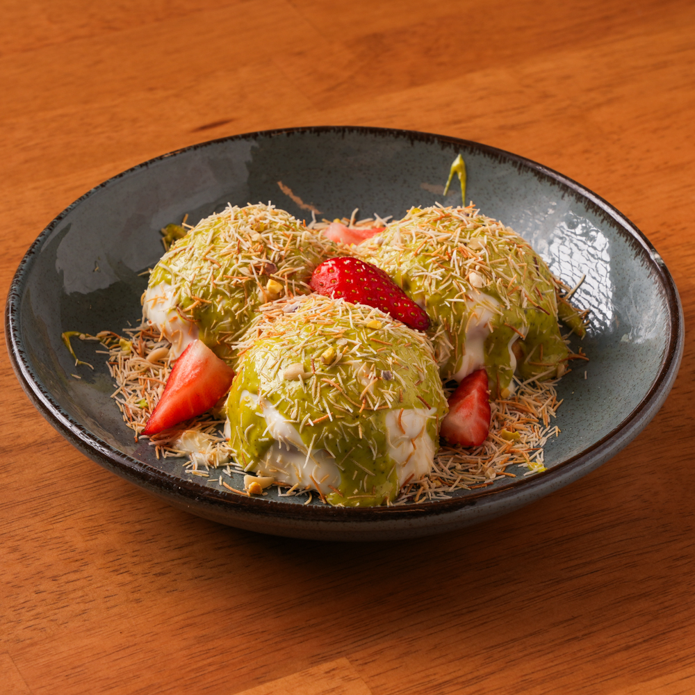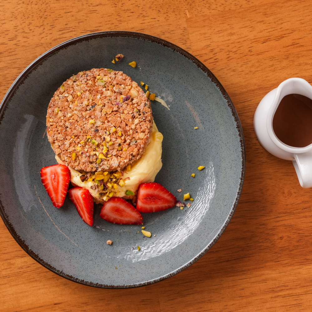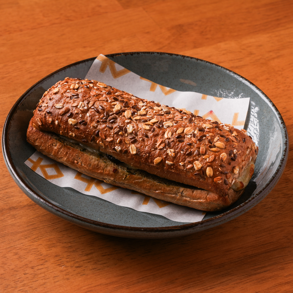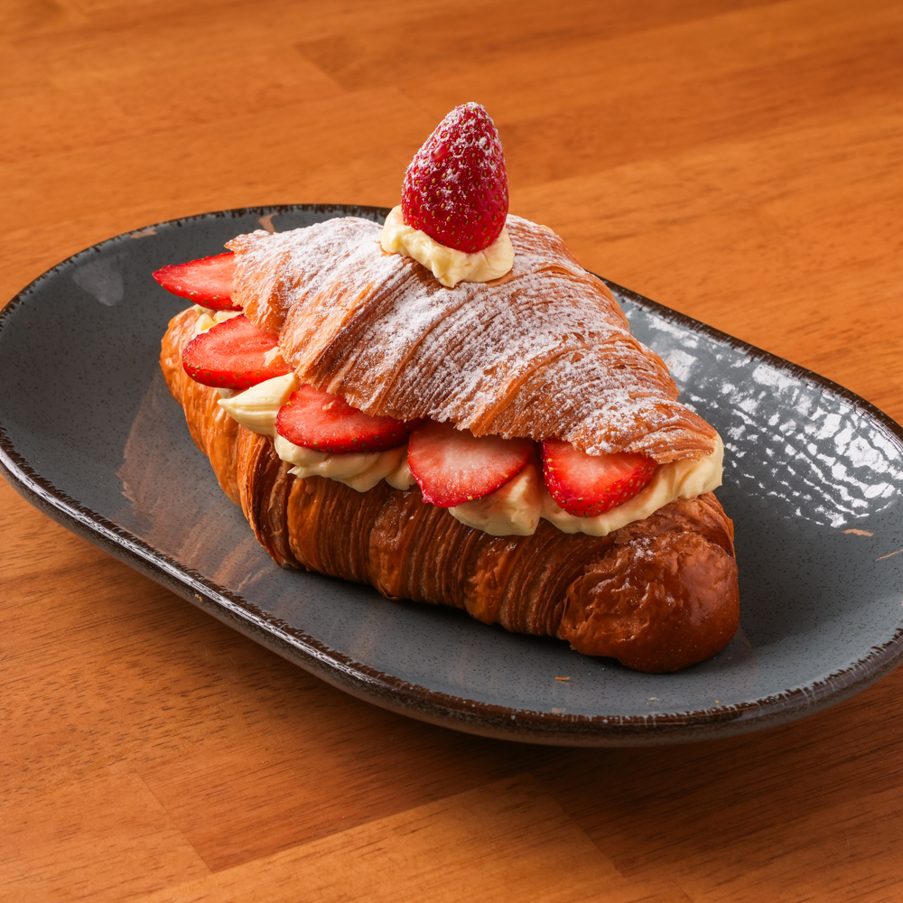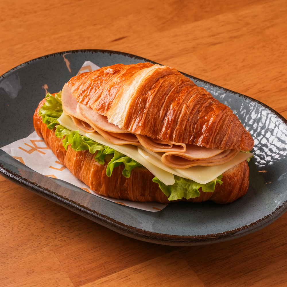 Kruvasan, labne, pesto sos, kıvırcık marul, kaşar peyniri, ızgara zeytin, smash avokado, fındık kreması, mini mozerella, çeri domates.